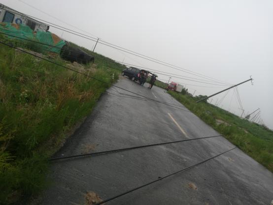 8月12日,連云港普降大到暴雨,徐圩新區(qū)徐新公路附近出現(xiàn)了龍卷風(fēng)等突發(fā)強(qiáng)對(duì)流天氣,導(dǎo)致供電局18根電線(xiàn)桿斷桿,2臺(tái)開(kāi)關(guān)遭雷電擊穿,35KV線(xiàn)路停電。臺(tái)南供電所轄區(qū)張圩小區(qū)、幸福家園道路沿線(xiàn)也遭受到不同程度的破壞,現(xiàn)場(chǎng)2根電線(xiàn)桿斷裂、多根電桿傾斜、架空導(dǎo)線(xiàn)掉落地上,道路交通一度癱瘓。