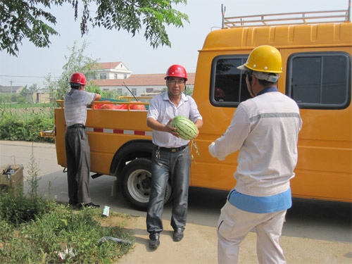 驕陽似火,酷暑難當。近日,青口供電所領導班子帶著西瓜、毛巾、礦泉水等防暑降溫物品,深入接戶線改造現場,為一線職工送去一份關懷、一份情誼、一份清涼。同時希望他們面對持續的高溫天氣要做好防暑降溫和安全防護工作,防止中暑事件的發生。(王學忠)