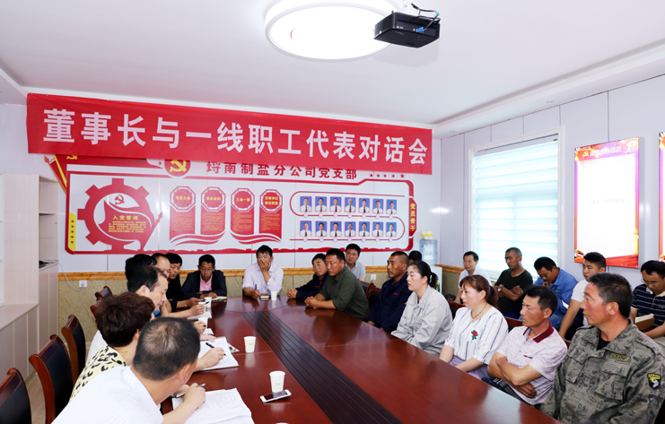 7月5日下午,投資公司在日曬制鹽公司會議室召開了董事長與一線職工代表對話交流座談會。公司黨委書記、董事長、總經理李國文與來自基層一線的職工代表、女工代表及管理人員代表30余人面對面進行對話交流,就廣大職工群眾密切關注的問題現場溝通,釋疑解惑,聽取意見和建議。會議由紀委書記、工會主席王宏主持。