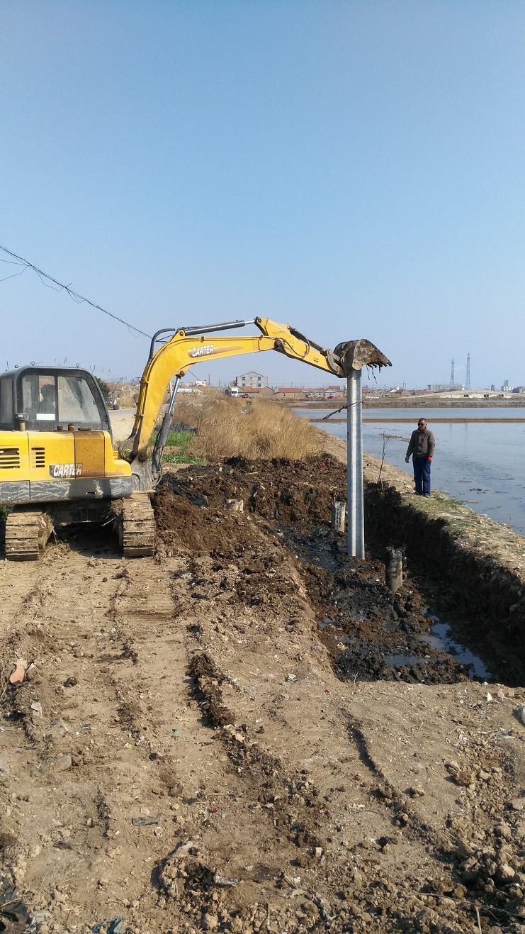 接到海鹽基地標志牌制作任務后,機電服務公司能認真研究,制定施工方案,確保標志牌基礎安全。(圖為施工現場)